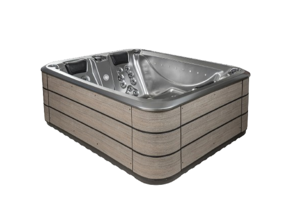 La base est en ABS thermoformé, assurant isolation, protection mécanique et finition soignée. Cette combinaison garantit la stabilité du spa, une isolation thermique efficace, et une très bonne longévité.
