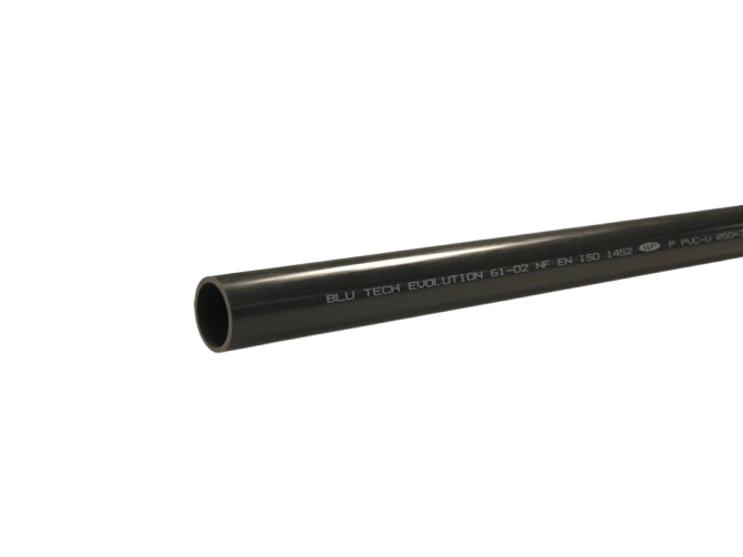 • Matériau : PVC‑U rigide gris, adapté aux conditions piscine (chlore, sel, UV).